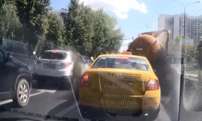 Septic tank explodes on tanker truck at red light! Massive blast scatters waste across busy road. No injuries reported, but a cleanup nightmare unfolds. Road safety...