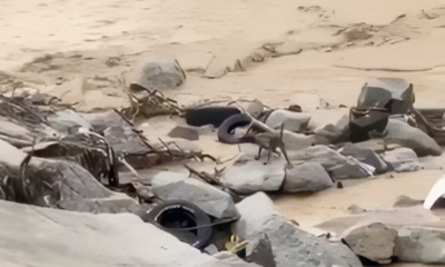 A lone street dog swept away by the current fought back, hauling itself to safety all on its own. Talk about unbreakable spirit!