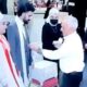 Bride reminds the groom who forgets to shake the hands of those who congratulate him with excitement