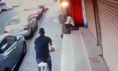 The mobile phone thief rides bike and steals shop keeper smart phone