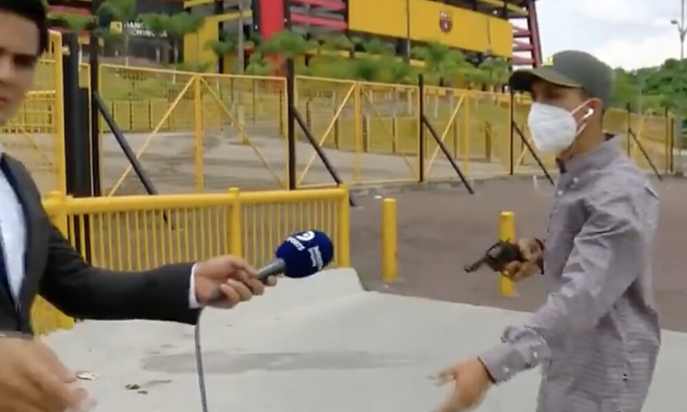 Diego Ordinola, a sports journalist for radio Diblú and Directv, suffered a robbery while he was outside the Monumental stadium carrying out informational work related to the Yellow Night In a video, an individual is seen wearing a mask and cap, he points a gun at Ordinola, to later do the same to the cameraman took the mobile phone and run away.