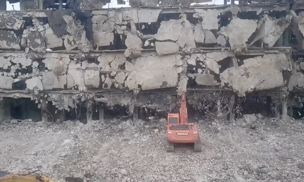 First of all, demolition crews, who intervene in a collapsing building, remove all residents. Then every part of the building is covered with bags, the building is put into a garbage bag so that it can be easily collected later. Then they drill holes all over this linoleum or bag so that it doesn’t stretch and tear at the moment of the explosion. Finally, explosives are placed in certain parts of the building’s columns (which they have already calculated). Meanwhile, with a radio in his hand, the officers check for the last time whether there is anything wrong around, whether there are any people inside. then they explode. It’s like a joke, but the building turns into rubble where it is, and there is no dust around.