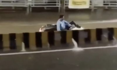 A man riding his scooter at night tried to cross a flooded area, lost control, and was swept away by the strong current along with his...