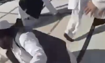 Crazy showdown between bus driver and passenger fighting to get on board.