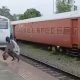 A guy was crossing the train tracks when a Vande Bharat train arrived. Crossing the railway line when the train is coming is a terrible idea.