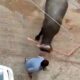 swans place the man who enters the artificial lake to cool off, swans throw out