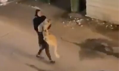 The dog attacked the passer-by, leading to his fatal collision with the vehicle.