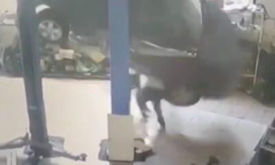 The population manager, who brought the repair shop to have the vehicle repaired, showed the location of the fault after the vehicle was lifted up and...