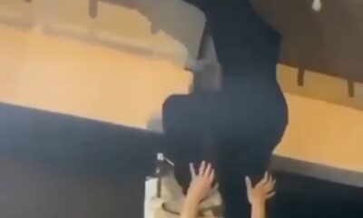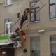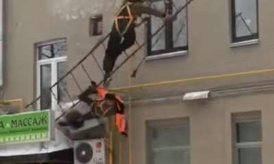 The waiter, who climbed the wall with the help of his friend to open the awning that did not open, fell during the fix repair