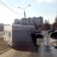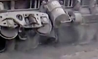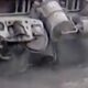 While the dumper of the freight train was being emptied, the load went out of control and spilled on the ground.