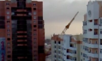 A construction crane crashed into a crowded neighborhood
