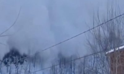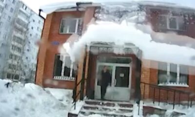 A camera caught the avalanche that shut down the Caucasus Mountain road.