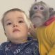 After his mother freed his hand, the baby, who had been crying from having his hair yanked, quieted down.