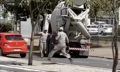 A cement truck, experiencing brake failure, careened out of control and collided with multiple vehicles