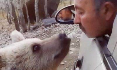 Wild bears stop passing vehicles and ask for food