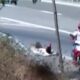 Risking his own life and the lives of others, the man is traveling over the hood of the moving vehicle for $ 1
