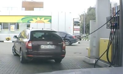 The drunk, who filled his car with gasoline at the gas station, forgot that he was pumping gasoline and overturned the pumps with a fuel funnel,...