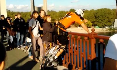 A young man who wanted to do a bungee jump to show off to his friends on a busy bridge in Kyiv failed