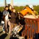 bored teenagers jump up on the high roof to do homemade bungee jump