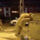 hungry bear descends into town smashing trash cans