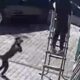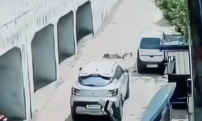 A child was attacked by stray dogs but managed to escape by jumping into a gap between buildings.