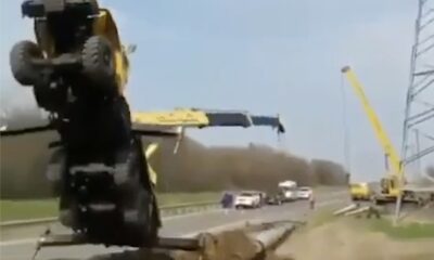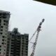 Crane trying to land a dozer at a construction site turned upside down due to not good calculation