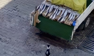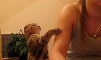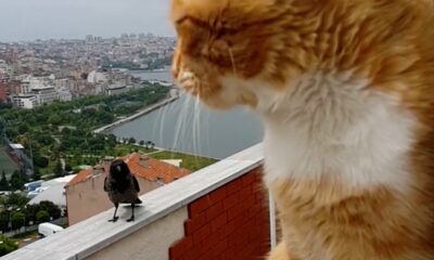 The cat, who has never seen a fox before, finally meets the fox and the adorable minutes begin