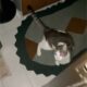 A cute cat who thinks her own image in the mirror is an enemy cat shows how scary she is