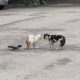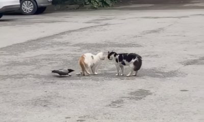 The crow was useless in stopping the catfight, but luckily the dog intervened, and it was done.