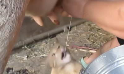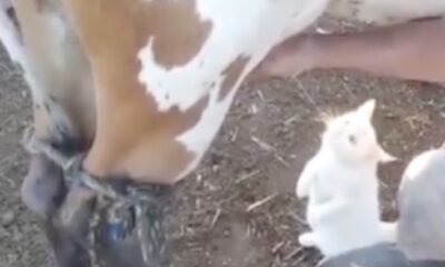 When a cat wants milk, it goes to the cow and drinks straight from the udder.