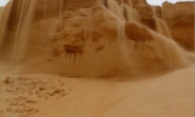 strong wind made a sand waterfall in the desert