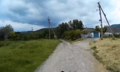The young dude, riding a motocross in the countryside, was wiped out when he hit the post where a goat was tied.