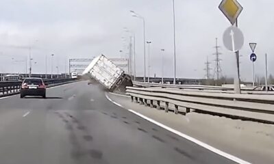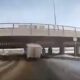 The cement truck that wanted to pass under the bridge got crashed on the bridge and caused the bridge to collapse.