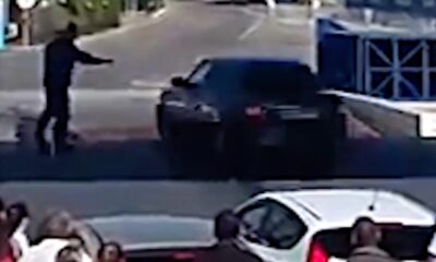 Car driver losing control, the vehicle dived into an active gas station