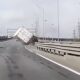 As the winter snow melts in the spring, floods occur in the rivers, flooding rivers create flooding on bridges, images of crossing such a bridge