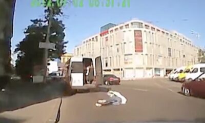 A kind driver slightly hit elderly woman and stop apologize pedesterian
