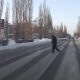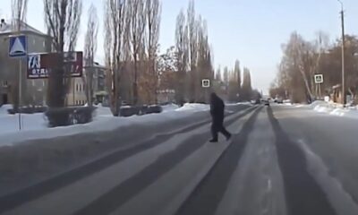A drunk goes across the street to buy vodka on a snowy day