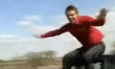 In the wedding convoy, the idiot who got out of his car window and tried to show fell from the car.