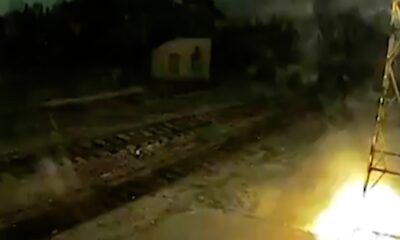 Workers, who made an iron platform to repair electricity poles and wires, crashed the platform to the electric wires, causing a short-circuit and a short-term explosion.