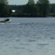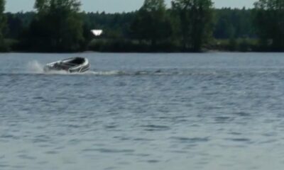 After losing control of the boat in motion, the men who fell into the lake wanted to catch and control the boat, but it did not...