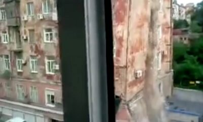 part of an old building collapsed due to improper practices while rebuilding from inside