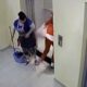 The woman who was riding the elevator got her foot stuck in the elevator shaft and fell into the elevator