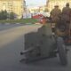 Russian army loading tanks on trailer with drunken soldier