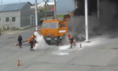 While filling the gas station tank, the gas station burned down as a result of the fire in the LPG tank on the side of the...