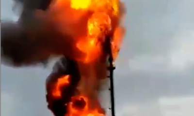 The fuel tank exploded with huge flames at the gas station that burned due to electricity.