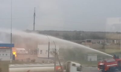 While filling the gas station tank, the gas station burned down as a result of the fire in the LPG tank on the side of the...