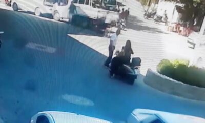 The novice driver hit the same pedestrian twice with the motorcycle.