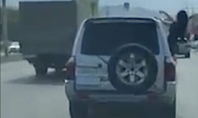 Dancing from the window of a moving vehicle, the girl fell to the ground