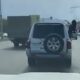 Girl dancing on top of a moving pickup takes a tumble on the pavement.