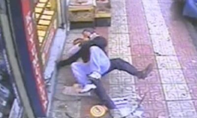 The thief who stole money was caught on CCTV when the cashier came to a grocery store and drove away, the cashier chased it with a...